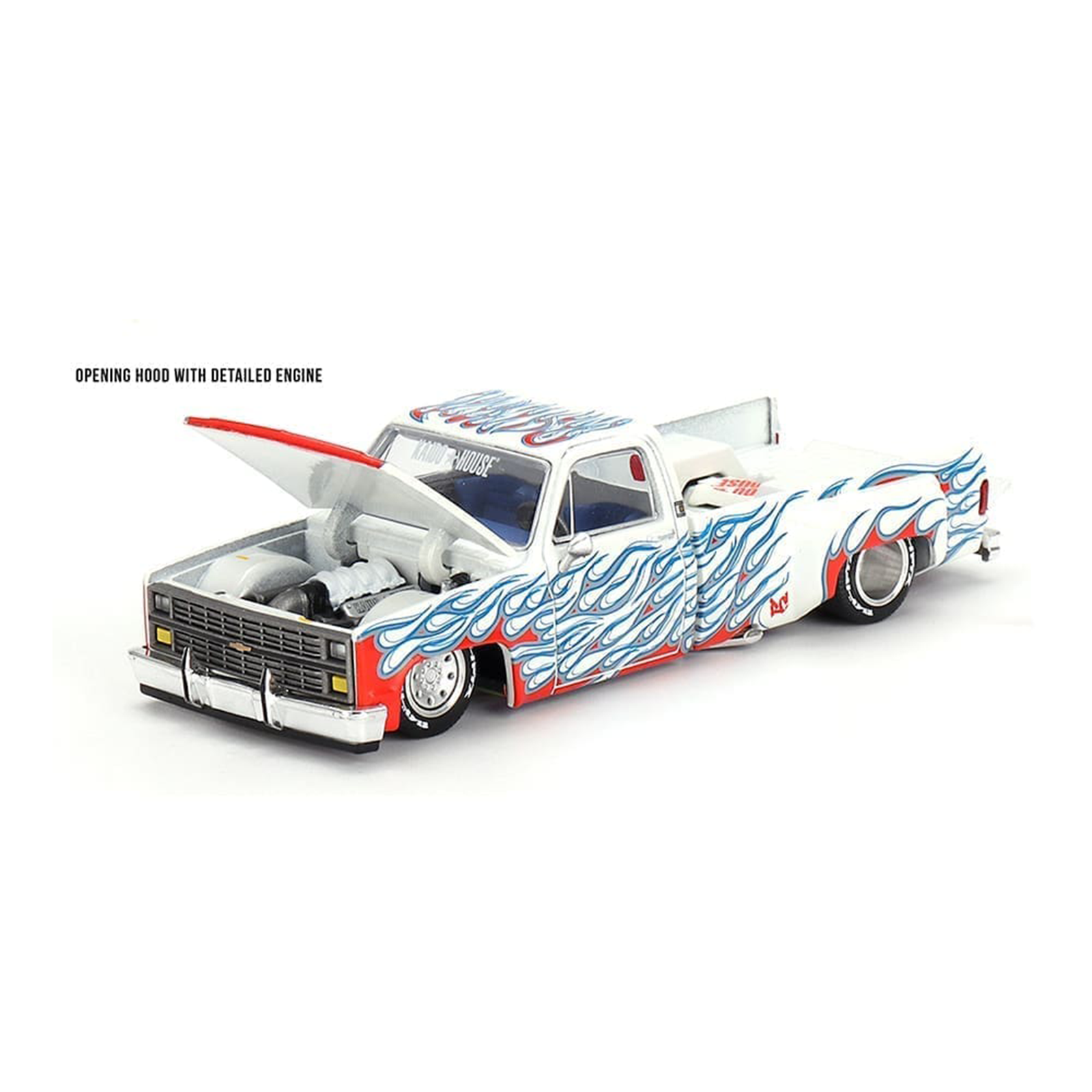 Kaido House X Mini GT Chevrolet Silverado Dually on Fire V2, White with Flames