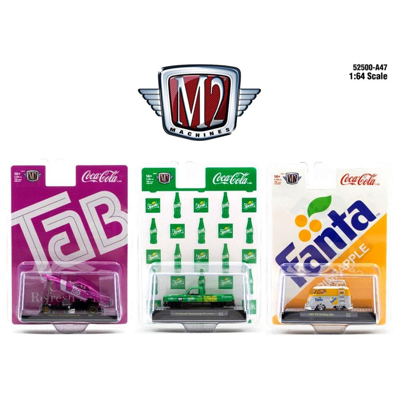 Painted and trimmed in unique Coca-Cola product themes, each vehicle is packaged in a matching individualized display box enhancing the models inside